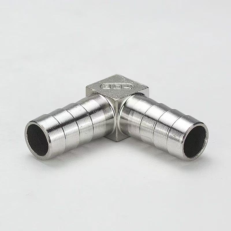 एल-टाइप प्यागोडा वाटर पाइप कनेक्टर: दुवै छेउमा काँटेदार प्यागोडा संरचना, दुई लचिलो नलीहरू बीच 90-डिग्री दिशात्मक जडान सिर्जना गर्न डिजाइन गरिएको छ।